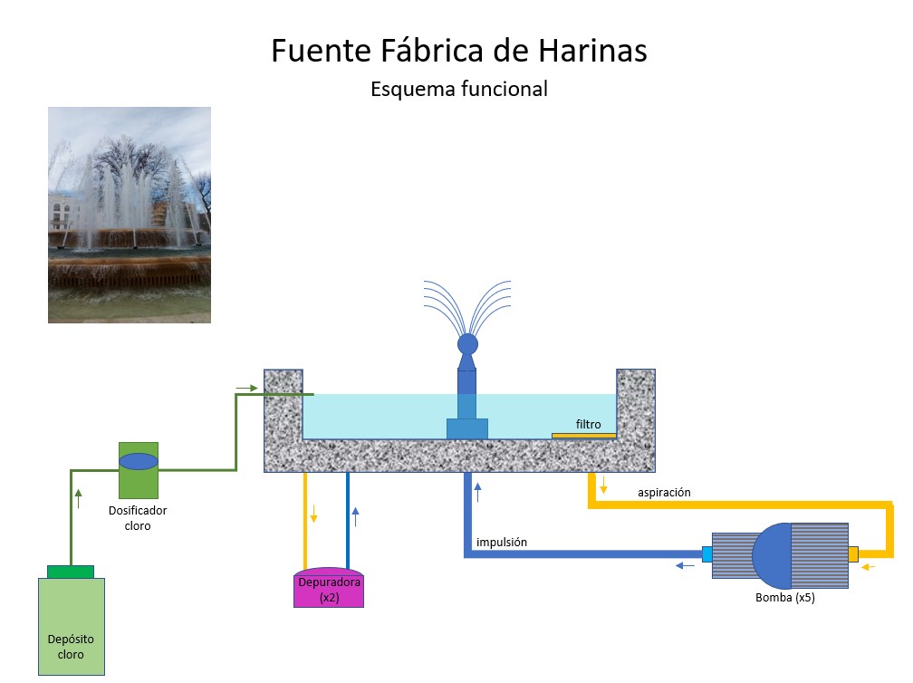 Alumbrado: Paneles led en los chorros y led perimetral en las cascadas