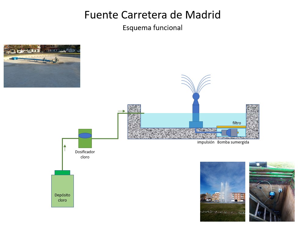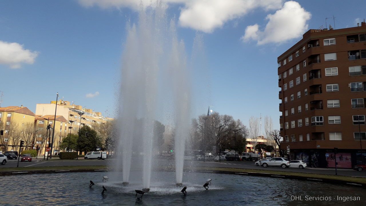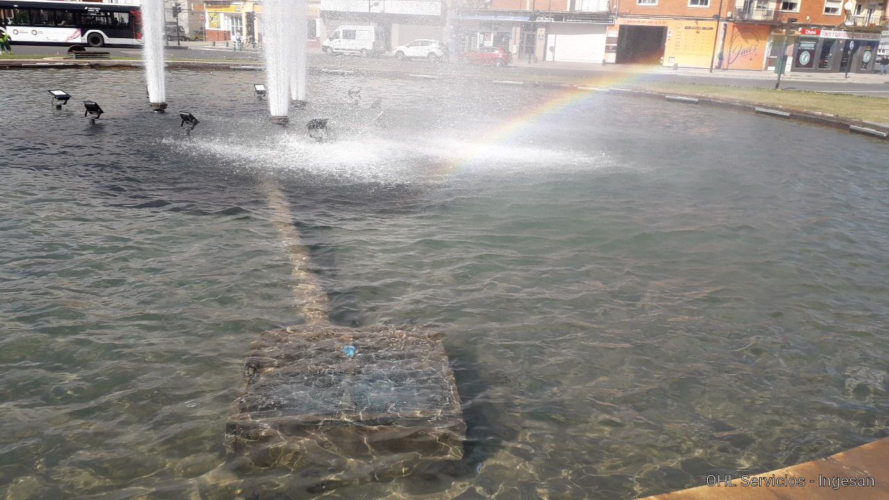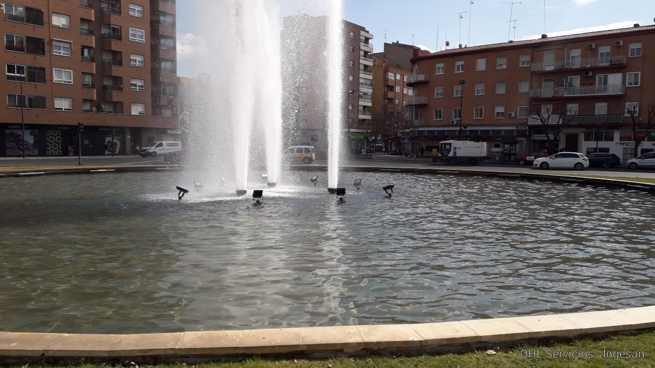 Alumbrado: 9 proyectores centrales y luz lineal perimetral