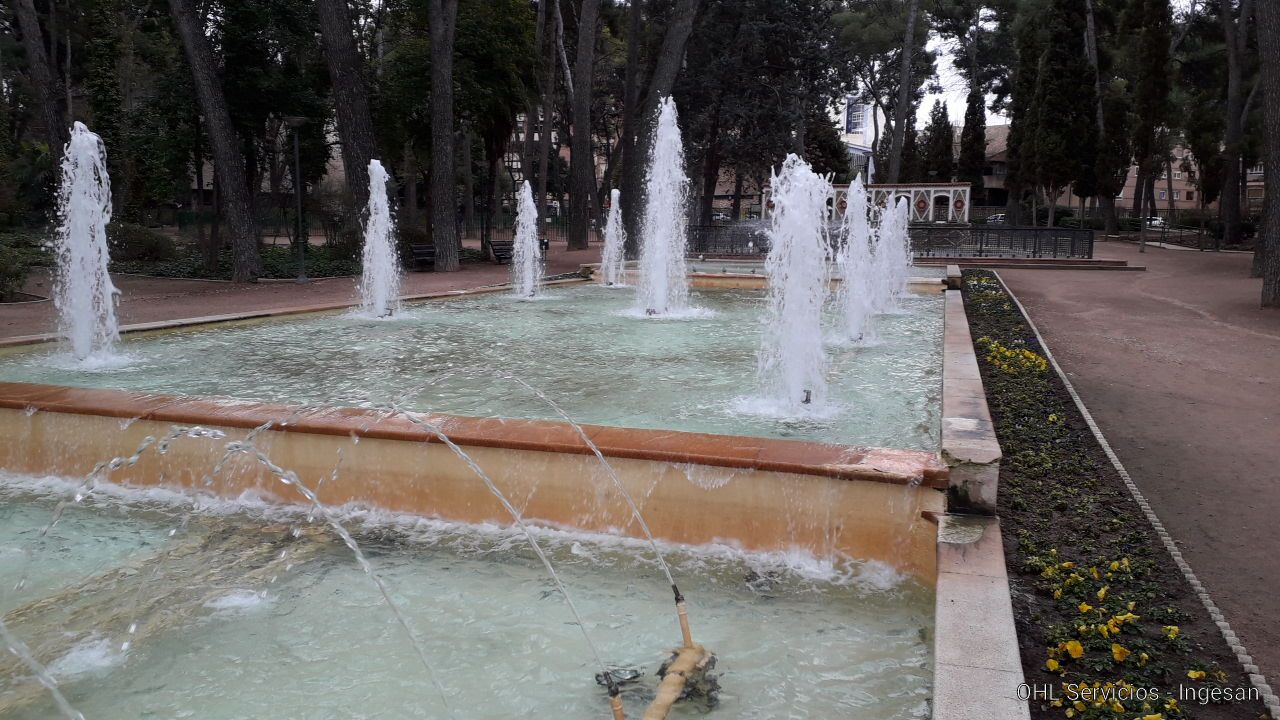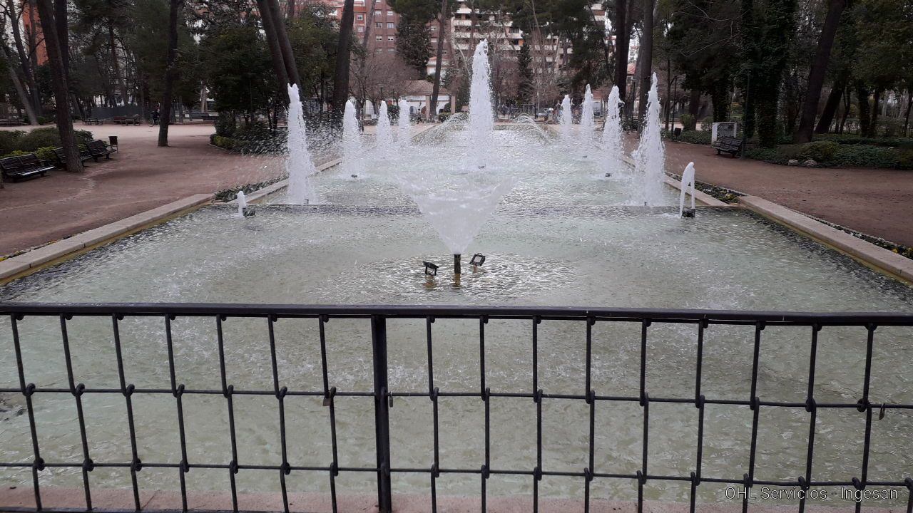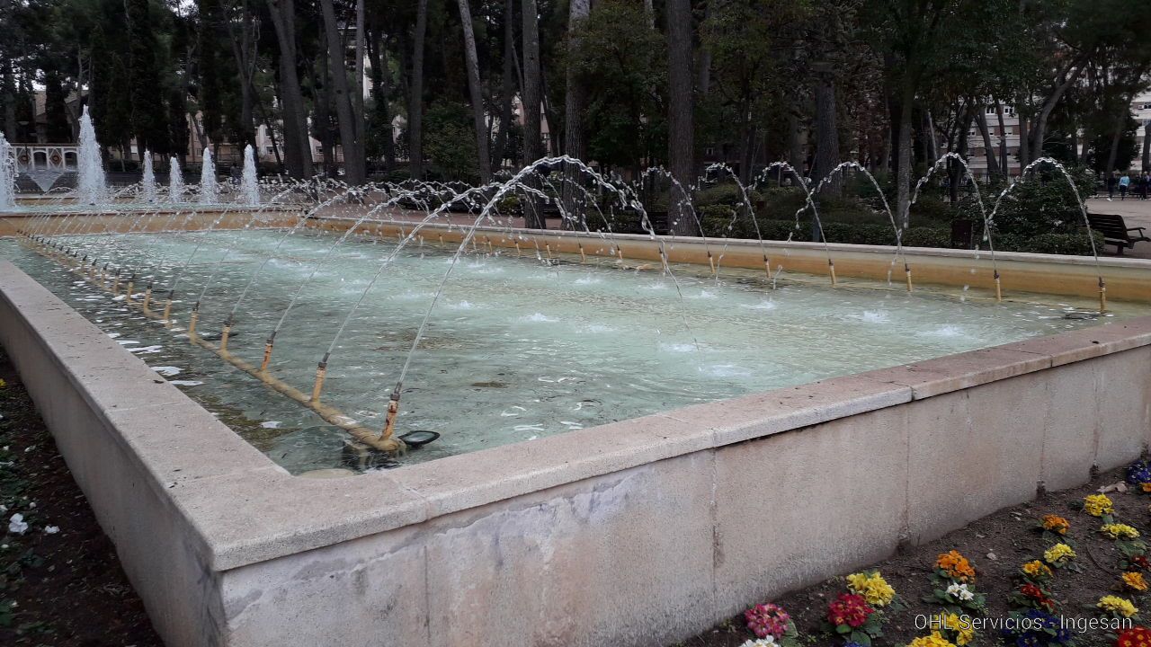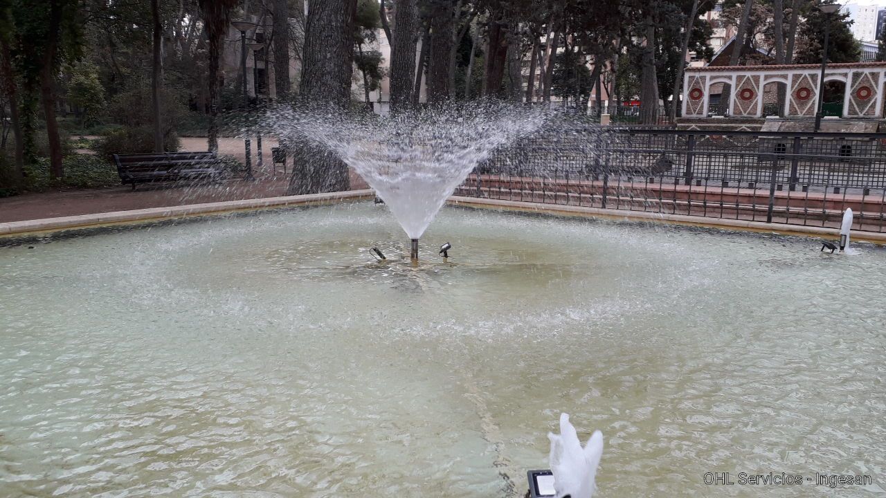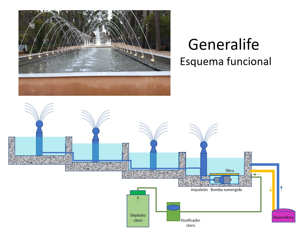 Juegos de agua: Vaso patos: Cascada y 3 chorros. Vaso de arriba 5. Vaso intermedio 9. Vaso de abajo 48 chorros cruzados tipo Alhambra