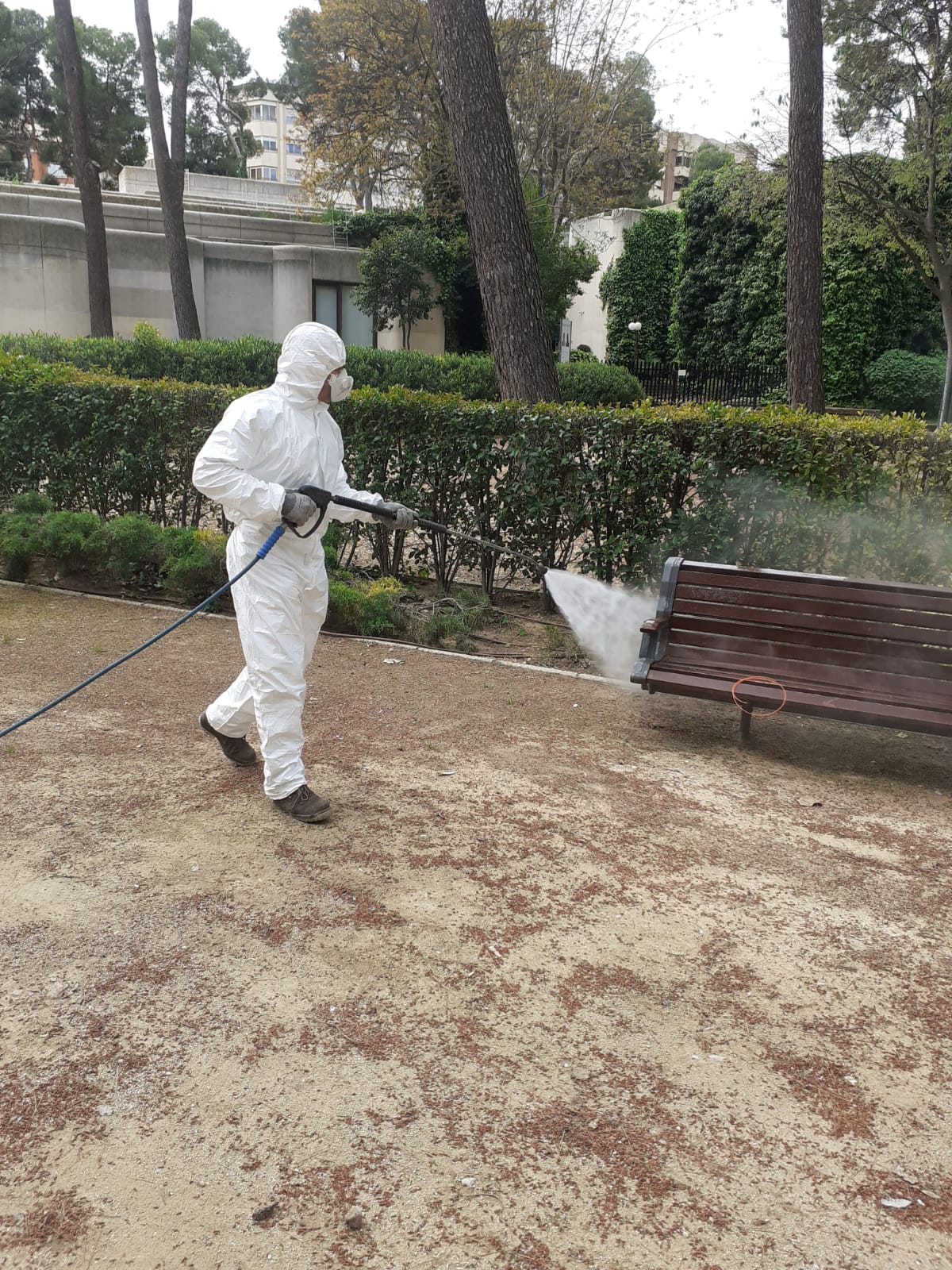 Todos los días, en horario de 7 a 9 de la mañana, se realiza una desinfección de bancos, papeleras y cualquier elemento de mobiliario de los parques y jardines.